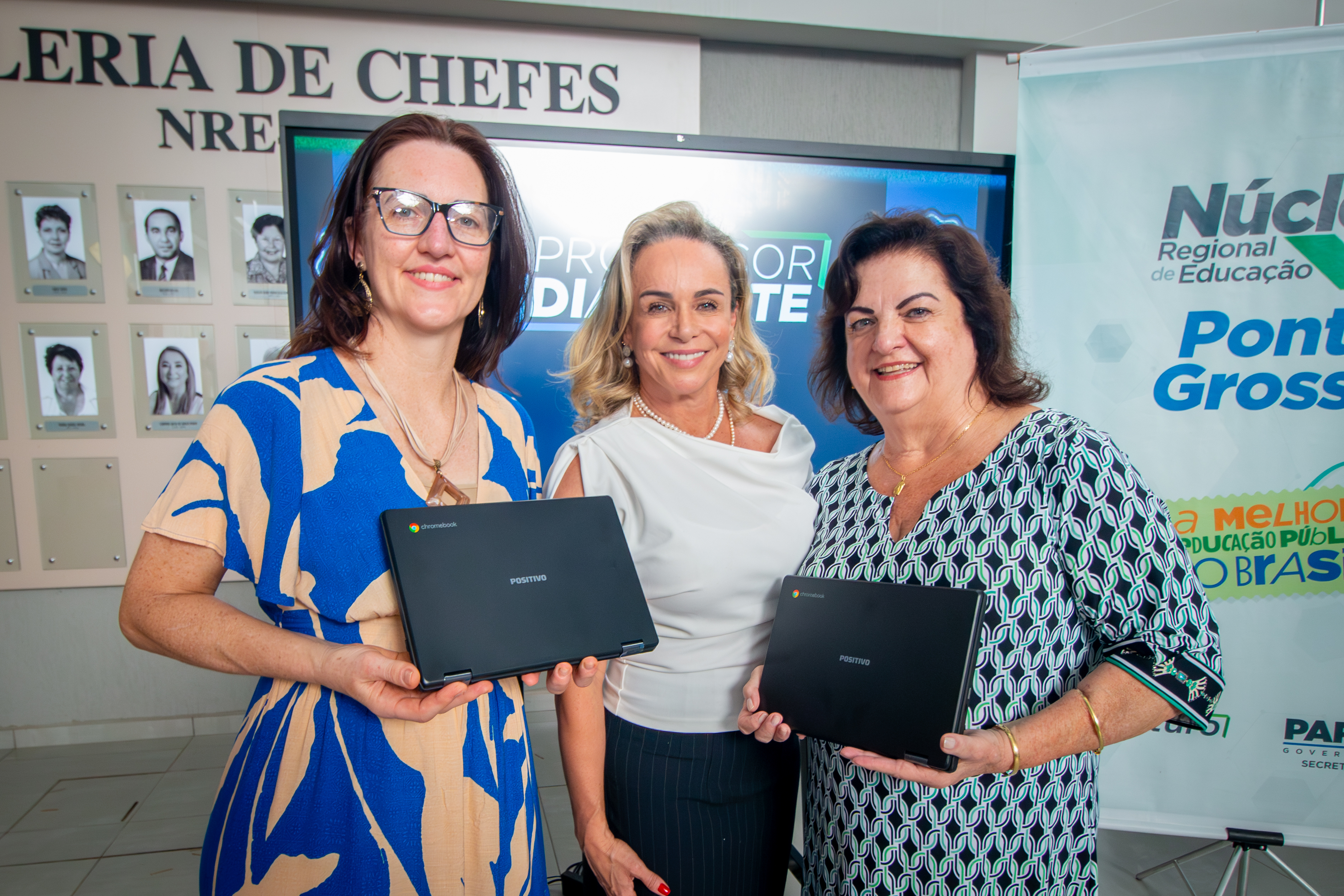 O Núcleo Regional de Educação (NRE) de Ponta Grossa realizou, na tarde desta segunda-feira (15), a entrega de Chromebooks aos Professores Diamante que atuam nas instituições da rede estadual de ensino. A iniciativa integra as ações de valorização dos profissionais da educação do Paraná e teve como base a pesquisa Fala Estudante, realizada pela Secretaria de Estado da Educação junto aos estudantes da rede estadual.